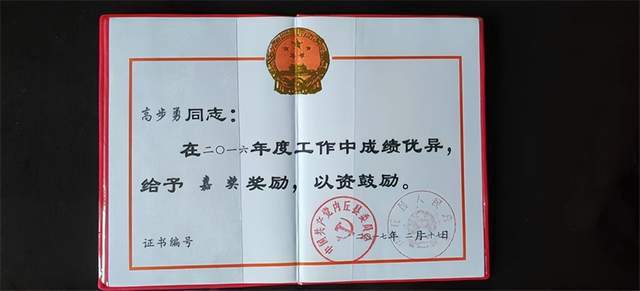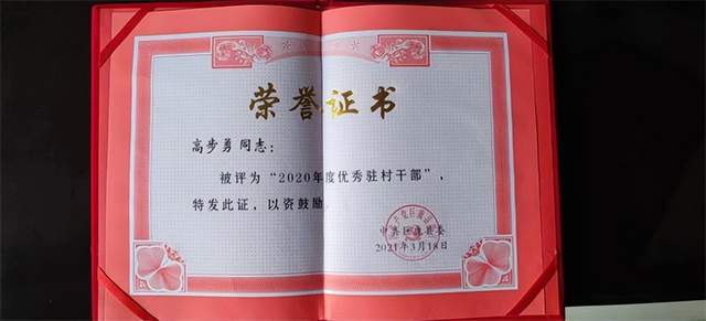 (上图:高步勇在驻村工作中的突出表现受到荣誉嘉奖)